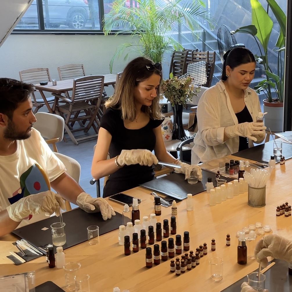 Her iki ürün için de üçer tane formül olacak ve siz bu üç formül arasından cildiniz için en iyi olanı seçip tasarımınıza başlayacaksınız. Seçtiğiniz formüldeki tüm hammaddeler sizin için hazırlanmış ve formüle uygun tartılmış olacak. Tamamladığınız ürünün sonunda koku tasarımı ise tamamen size ait olacak. Tasarım yaparken kullanacağınız tüm materyalleri biz sizin için hazırlıyor olacağız (beher, spatül,baget vb.) Kullanacağınız hammaddelerin tamamı doğal ürün sertifikalıdır. 2 saat boyunca kendinize ürün tasarlamanın keyfini çıkarırken dilediğiniz her konuda soru sorabilir ve destek alabilirsiniz.